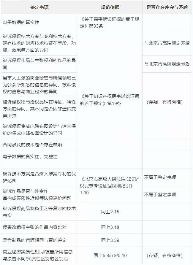 除“判定被控侵权技术是否属于原告专利申请日之前已经公开的公知公用技术;发明、实用新型专利说明书是否充分公开技术方案。权利人主张的信息是否不为公众所知悉;技术合同案件的鉴定”外,其他鉴定事项均属于法院审判权的职权范围。即便当事人花费大量的成本,其获得的鉴定意见也不应被法院作为质证对象,纳入采信的范围。